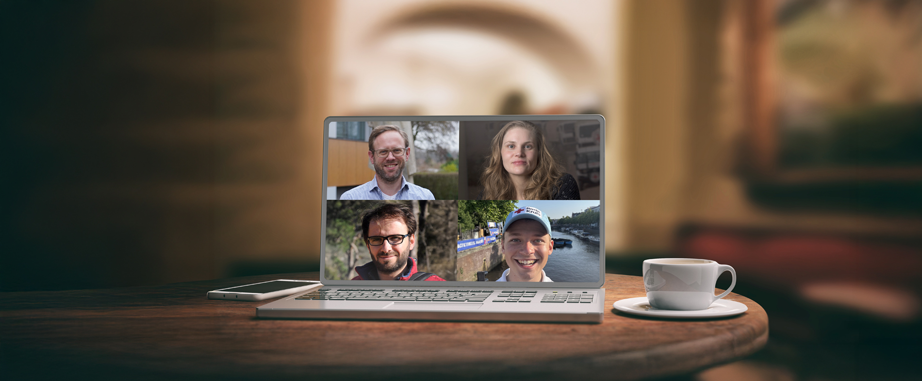 Rond de tafel zitten Evenementenhulpverlener Luke Govers, vrijwilliger Diversiteit en Inclusie Mazen Mulhem, Noodhulpcoördinator internationaal Kim de Vos en hoofd Juridische Zaken en HOR-adviseur Jan Tijmen Ninck Blok. Ze vertellen over het belang van de grondbeginselen in hun werk en hoe ze die toepassen. Ook als dat soms lastig is.