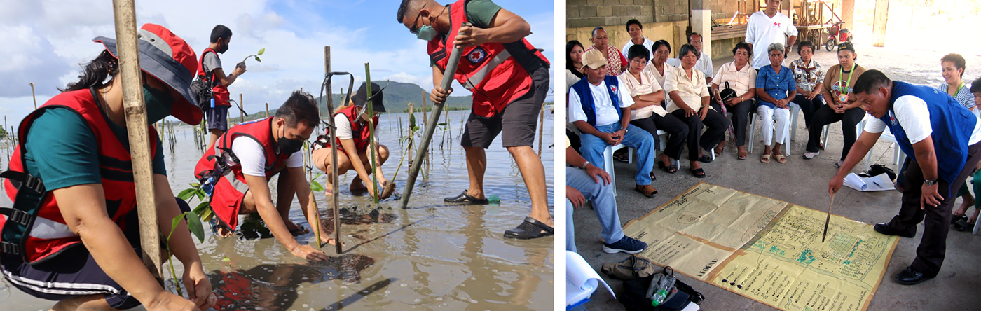 Een aantal jaar geleden heeft de Internationale Federatie van het Rode Kruis (IFRC) een wereldwijde samenwerking gesloten met het Wereld Natuur Fonds (WNF). Frederike: “In de Filipijnen werken de lokale organisaties nu samen. Het WNF brengt de kennis van de natuur en lokale ecosystemen mee en het Filipijnse Rode Kruis de verankering in en de kennis van de lokale gemeenschappen - de humanitaire kracht. Samen werken ze aan het versterken en beschermen van lokale gemeenschappen. Dit doen ze onder het motto: ‘working with nature to protect people – samenwerken met de natuur om mensen te beschermen’.”
